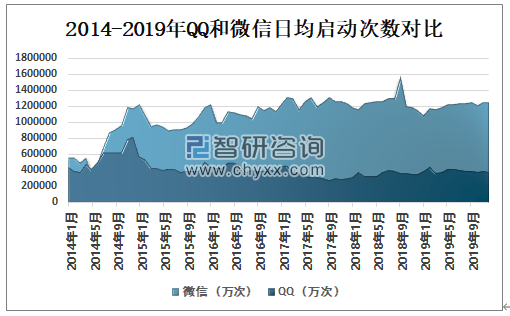 2014-2019年QQ和微信启动次数对比