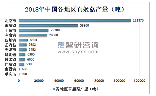 北京市、山东省、上海市及湖南省为真姬菇主要生产地区,2018年北京市共生产真姬菇111370吨,山东省共生产真姬菇58800吨,上海市共生产真姬菇29308.5吨,湖南省紧跟其后,生产真姬菇28000吨。
