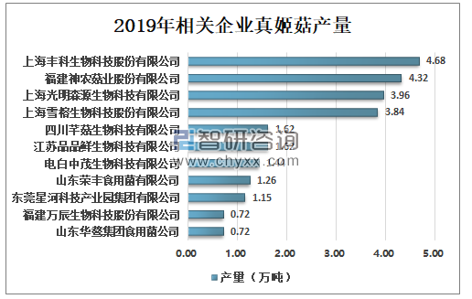 2019年相关企业真姬菇产量
