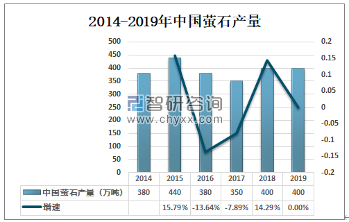 2014-2019年中国萤石产量