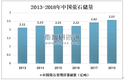 2013-2018年中国萤石储量