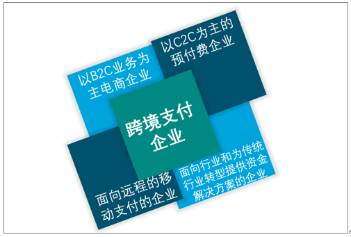 随着跨境支付技术的不断探索,跨境支付企业发展模式逐渐清晰,其细分行业不断出现,越来越多的支付企业受到市场青睐。目前支付企业主要可分为四大类:第一类是以B2C业务为主电商企业,其覆盖整个行业;第二类是以C2C为主的预付费企业;第三类面向远程的移动支付的企业;第四类是面向行业和为传统行业转型提供资金解决方案的企业。