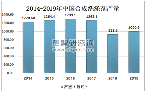 2014-2019年中国合成洗涤剂产量