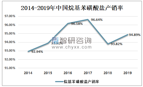 2014-2019年中国烷基苯磺酸盐产销率
