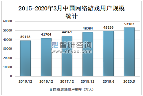 网络游戏是一种新颖的休闲娱乐方式,其虚拟性、互动性是其它娱乐方式所无法比拟的。在社会生活压力越来越大、代际冲突也日趋激烈的今天,人们需要找到一个缓解情绪的途径,网络游戏营造的虚拟空间恰恰满足了这种需求。在网络游戏高速发展的今天,娱乐化成为当代人生活中不可分割的组成部分,我们在众多的网络文化中看到网络游戏的独特性以及带给时代发展的特殊贡献,使之越来越扮演者举足轻重的地位。2019上半年中国网络游戏用户规模为49356万人,较2018年年底增加了972万人;2020年3月中国网络游戏用户规模为53182万人,较2019年上半年增加了3826万人。