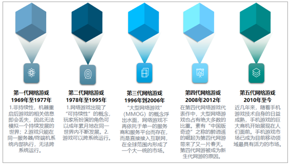 智研咨询发布的《2020-2026年中国网络游戏市场现状调研及投资前景分析报告》数据显示:网络游戏发展到今天,经历了五个发展时期,1969年至1977年称为第一代网络游戏发展时期,由于当时的计算机硬件和软件尚无统一的技术标准,因此第一代网络游戏的平台、操作系统和语言各不相同。它们大多为试验品,运行在高等院校的大型主机上,如美国的麻省理工学院、弗吉尼亚大学,以及英国的埃塞克斯大学。