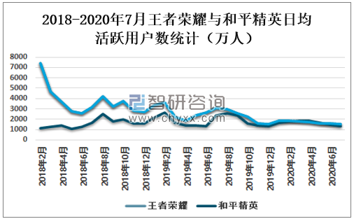 2020年7月王者荣耀日均活跃用户数为1550.7万人,较2020年1月减少了333万人;2020年7月和平精英日均活跃用户数为1322.7万人,较2020年1月减少了330.1万人。