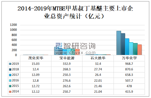 2014-2019年MTBE甲基叔丁基醚主要上市企业总资产统计(亿元)