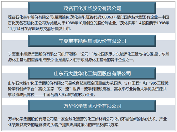 MTBE甲基叔丁基醚主要上市企业有茂名石化实华股份有限公司、宁夏宝丰能源集团股份有限公司、山东石大胜华化工集团股份有限公司、万华化学集团股份有限公司等。