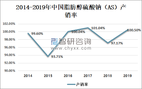 2014-2019年中国脂肪醇硫酸钠(AS)产销率