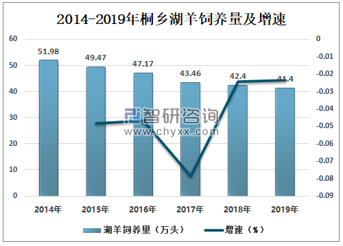 2014-2019年桐乡湖羊饲养量及增速