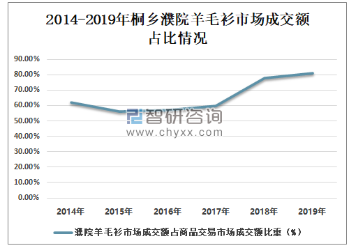 2014-2019年桐乡濮院羊毛衫市场成交额占比情况