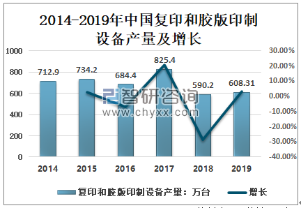 2014-2019年中国复印和胶版印制设备产量及增长