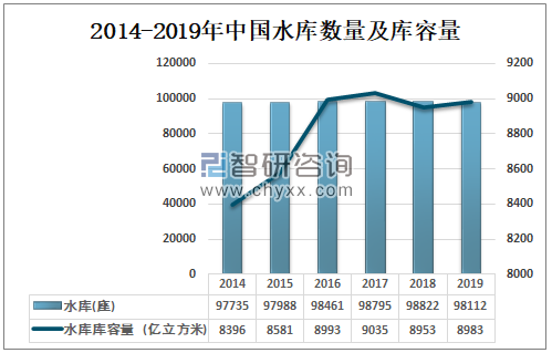 2014-2019年中国水库数量及库容量