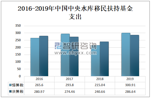 2016-2019年中国中央水库移民扶持基金支出