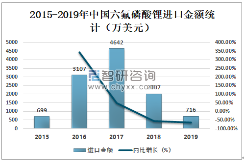 2015-2019年中国六氟磷酸锂进口金额统计