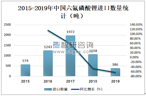 2015-2019年中国六氟磷酸锂进口数量统计