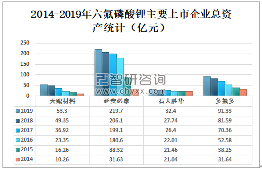 2014-2019年六氟磷酸锂主要上市企业总资产统计(亿元)