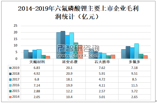 2014-2019年六氟磷酸锂主要上市企业毛利润统计(亿元)