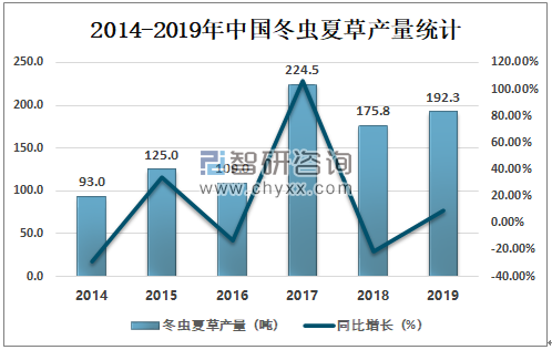 2014-2019年中国冬虫夏草产量统计