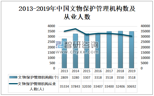 作为社会公益机构的文物保护管理机构承担着文物典藏以及科研等职能,不仅要征集和妥善保管各类有价值的文物,还要对其进行专业化的鉴定、分类和构建系统化的档案等活动。2019年中国共有3518个文物保护管理机构,较2018年减少了32个,从业人数为30692人。