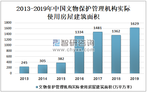 2013-2019年中国文物保护管理机构实际使用房屋建筑面积