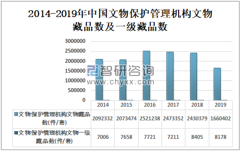 2014-2019年中国文物保护管理机构文物藏品数及一级藏品数