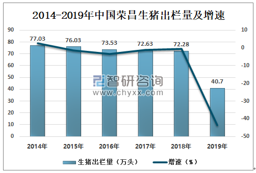 2014-2019年中国荣昌生猪出栏量及增速
