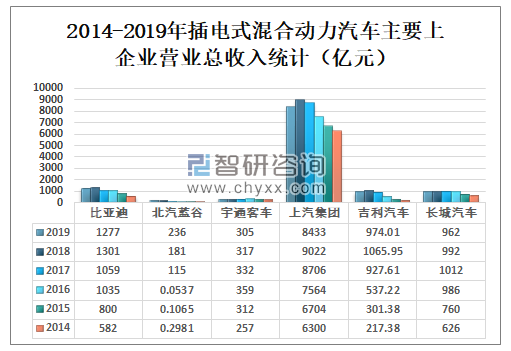 2014-2019年插电式混合动力汽车主要上企业营业总收入统计(亿元)