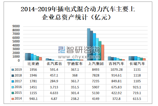 2014-2019年插电式混合动力汽车主要上企业总资产统计(亿元)