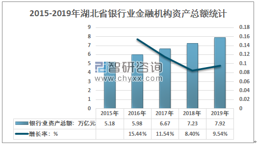 2019年,湖北省银行业金融机构经营行为更趋理性规范,资产总额总计7.92万亿元,同比增长9.54%,资产增速持续低于贷款增速,资金“脱实向虚”持续改善。