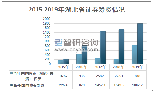 2019年,湖北省债券融资规模达1802.7亿元,占全省资本市场直接融资的66.7%,政府债表现突出,2019年,湖北省政府通过资本市场共发行政府债券18笔,合计1041.3亿元,占比超过债券市场直接融资规模的一半。