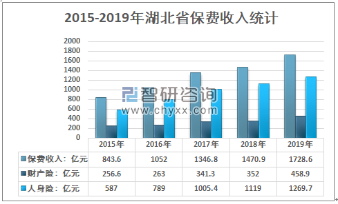 2019年湖北省实现财产险保费收入458.9亿元,实现人身险保费收入1269.7亿元。