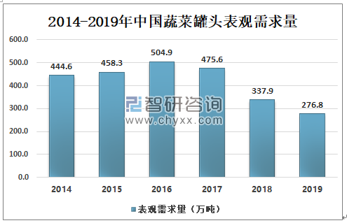 2014-2019年中国蔬菜罐头表观需求量