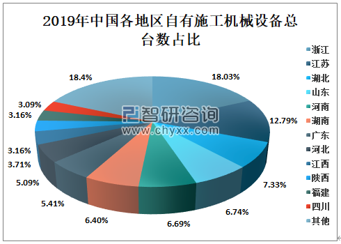 建筑产业现代化技术体系基本成熟,形成一批达到国际先进水平的关键核心技术和成套技术,建设一批国家级、省级示范城市、产业基地、技术研发中心,培育一批龙头企业。其中浙江自有施工机械设备总台数177万台,占总台数的18.03%,居全国第一;其次是江苏、湖北、山东等地,占比分别是12.79%、7.33%、6.74%。