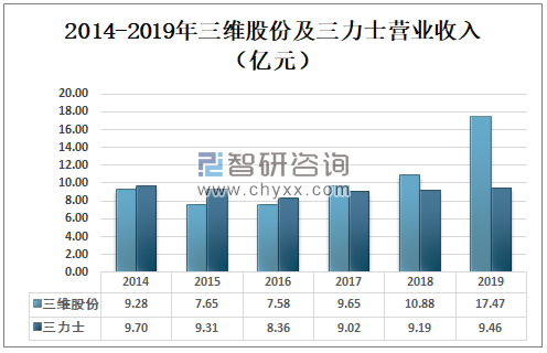 2018年三维股份及三力士营业收入10.88亿元、9.19亿元;2019年三维股份及三力士营业收入分别为17.47亿元、9.46亿元。