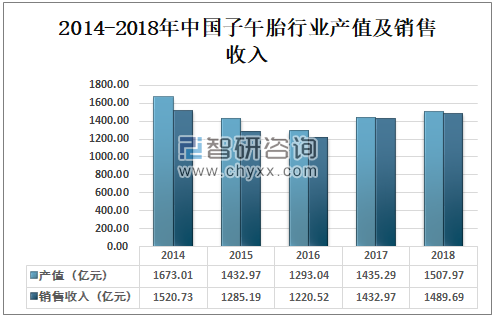 随着汽车保有量的持续提升,子午胎的需求也稳定增长。根据中国橡胶工业协会数据显示:2018年中国子午胎产值为1507.97亿元,销售收入为1489.69亿元。