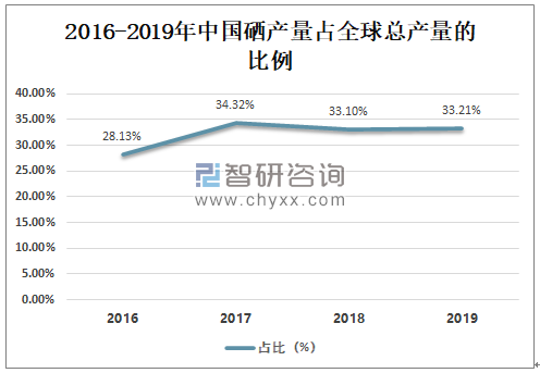 2016-2019年中国硒产量占全球总产量的比例