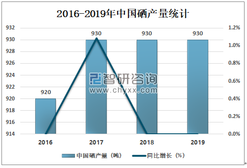 智研咨询发布的《2021-2027年中国硒行业发展现状调查及投资策略研究报告》数据显示:中国硒储量非常稳定,2014-2019年中国硒储量均为26000吨,中国硒产量也较为平稳,2019年中国硒产量为930吨,与2018年持平。