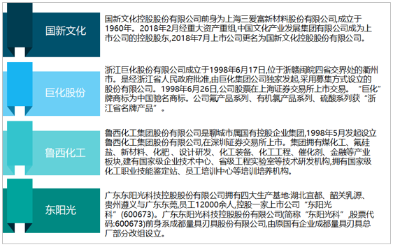 2019年制冷剂主要上市企业有国新文化、巨化股份、鲁西化工、东阳光等。