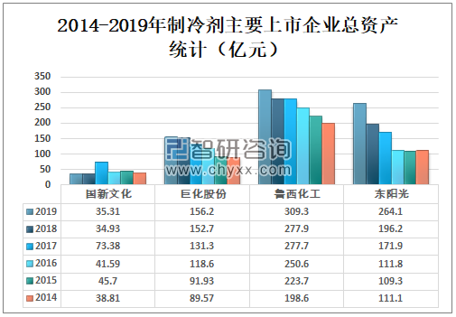 2014-2019年制冷剂主要上市企业总资产统计(亿元)