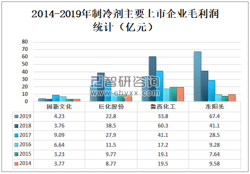 2014-2019年制冷剂主要上市企业毛利润统计(亿元)