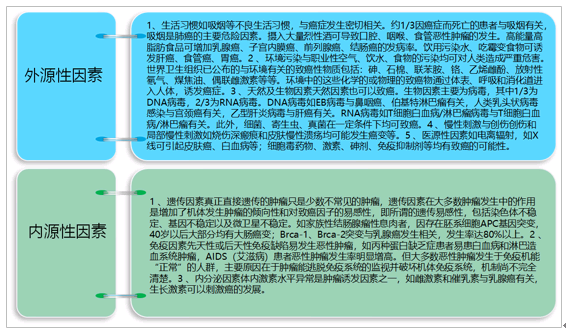 恶性肿瘤一般指癌症。在医学上,癌(cancer)是指起源于上皮组织的恶性肿瘤,是恶性肿瘤中最常见的一类。相对应的,起源于间叶组织的恶性肿瘤统称为肉瘤。有少数恶性肿瘤不按上述原则命名,如肾母细胞瘤、恶性畸胎瘤等。一般人们所说的“癌症”习惯上泛指所有恶性肿瘤。癌症具有细胞分化和增殖异常、生长失去控制、浸润性和转移性等生物学特征,其发生是一个多因子、多步骤的复杂过程,分为致癌、促癌、演进三个过程,与吸烟、感染、职业暴露、环境污染、不合理膳食、遗传因素密切相关。恶性肿瘤的病因尚未完全了解。目前较为明确的与癌症有关的因素可分为外源性和内源性两大类。