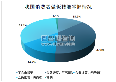 伴随着家庭结构日趋小型化,再加上工作时间分散化,家庭饮食结构发生了很大变化,推动餐饮方式实现“从厨房到餐馆再到外卖”的转变,越来越多的家庭、个人不再自己做饭,或将做饭视为闲暇时的娱乐。13. 2%的消费者不会做饭做菜,85. 4%的消费者会做饭做菜,1.4%的消费者属于其他情况。会做饭的消费者中,有33. 4%的消费者表示喜欢做饭,37. 8%的消费者表示不喜欢做饭,14. 2%的消费者表示没有条件做饭。不会做饭、不喜欢做饭、没有条件做饭的消费者外卖消费频次相对较高。