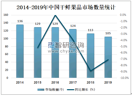 为新鲜和干燥的蔬果提供交易的场所称之为干鲜果品市场。近年来中国干鲜果品市场数量逐年减少,2019年中国共有干鲜果品市场105个,较2018年减少了8个。