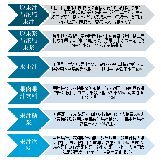 果汁上游为果汁生产提供水果、食品添加剂及生产设备,中游主体为果汁企业,进行果汁生产、加工过程,下游零售渠道多样。