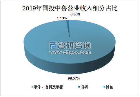 其中,2019年国投中鲁果汁、香料及果糖营业收入为13.11亿元,占总营业收入的98.57%。