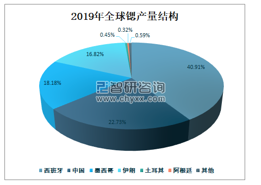 智研咨询发布的《2021-2027年中国金属锶行业市场研究分析及发展趋势预测报告》数据显示:2019年阿根廷锶产量为700吨;中国锶产量为50000吨;伊朗锶产量为37000吨;墨西哥锶产量为40000吨;西班牙锶产量为90000吨;土耳其锶产量为1000吨。