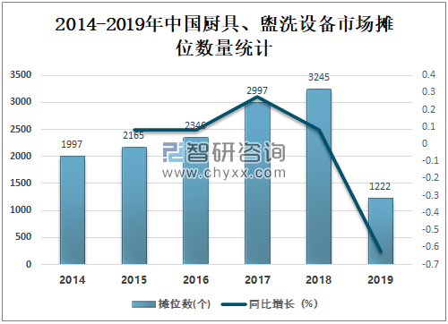 2014-2019年中国厨具、盥洗设备市场摊位数量统计