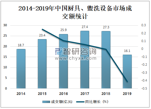 2014-2019年中国各类厨具、盥洗设备市场成交额统计